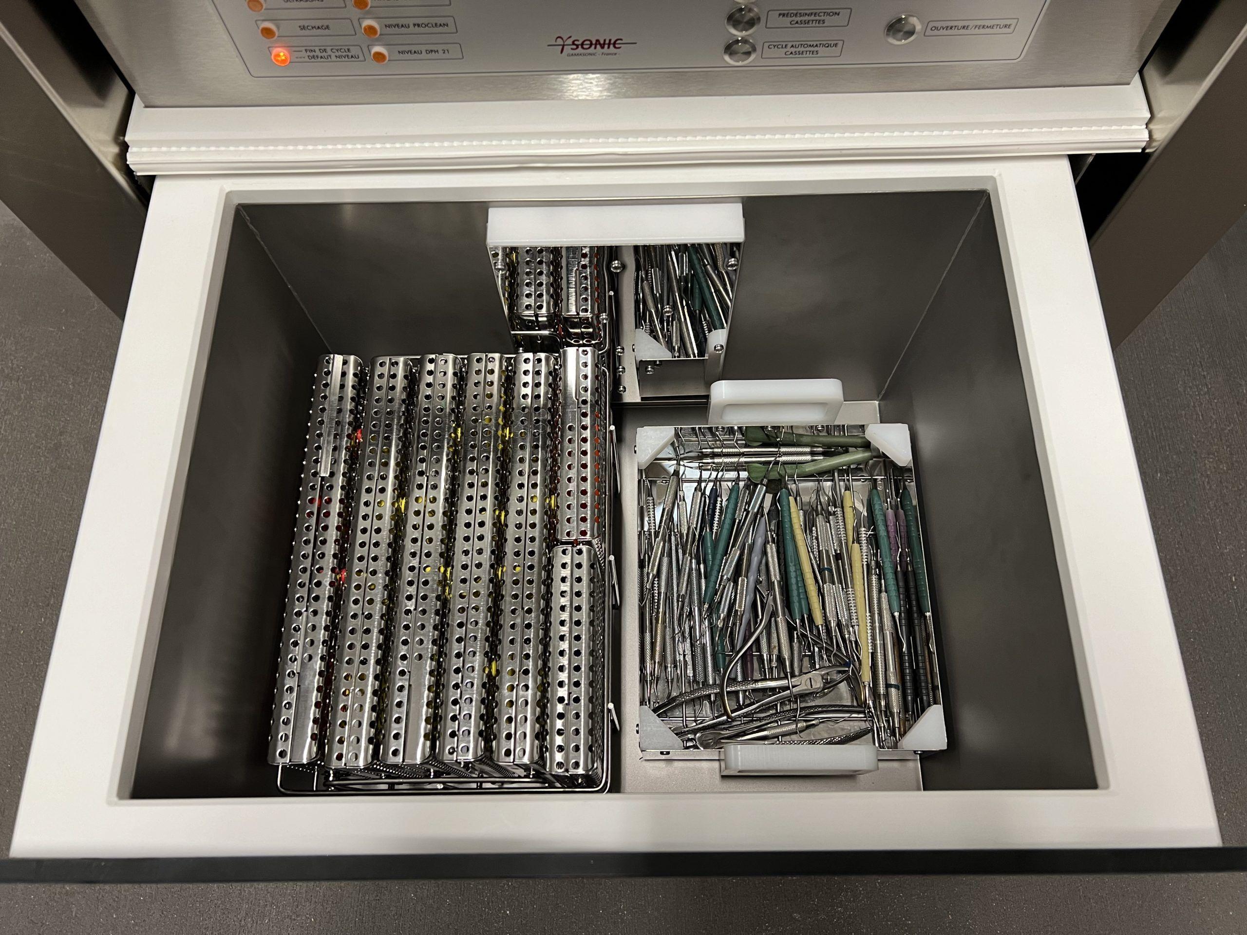 - 2 cycles de pré-désinfection (paniers/cassettes)
