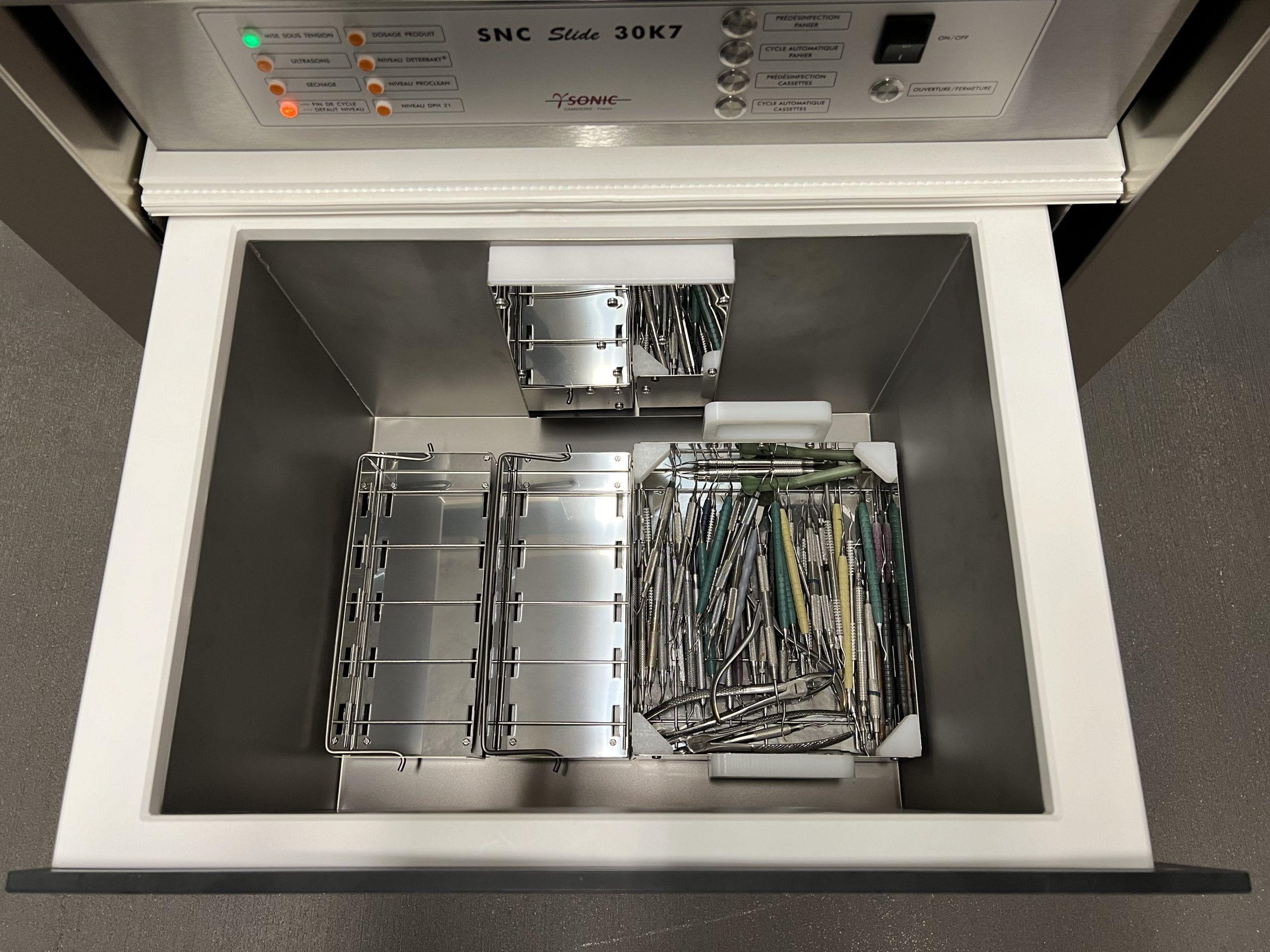Le laveur-désinfecteur SNC Slide 30-K7 (ISO 15883-1-5) est destiné au nettoyage par ultrasons des dispositifs médicaux réutilisables (D.M.R.).